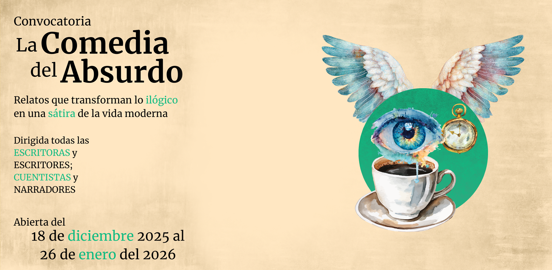 - La comedia del absurdo / ConvocatoriaLetraria invita a crear relatos que abracen el humor más inesperado, ingenioso o desconcertante para revelar verdades sobre la vida contemporánea.