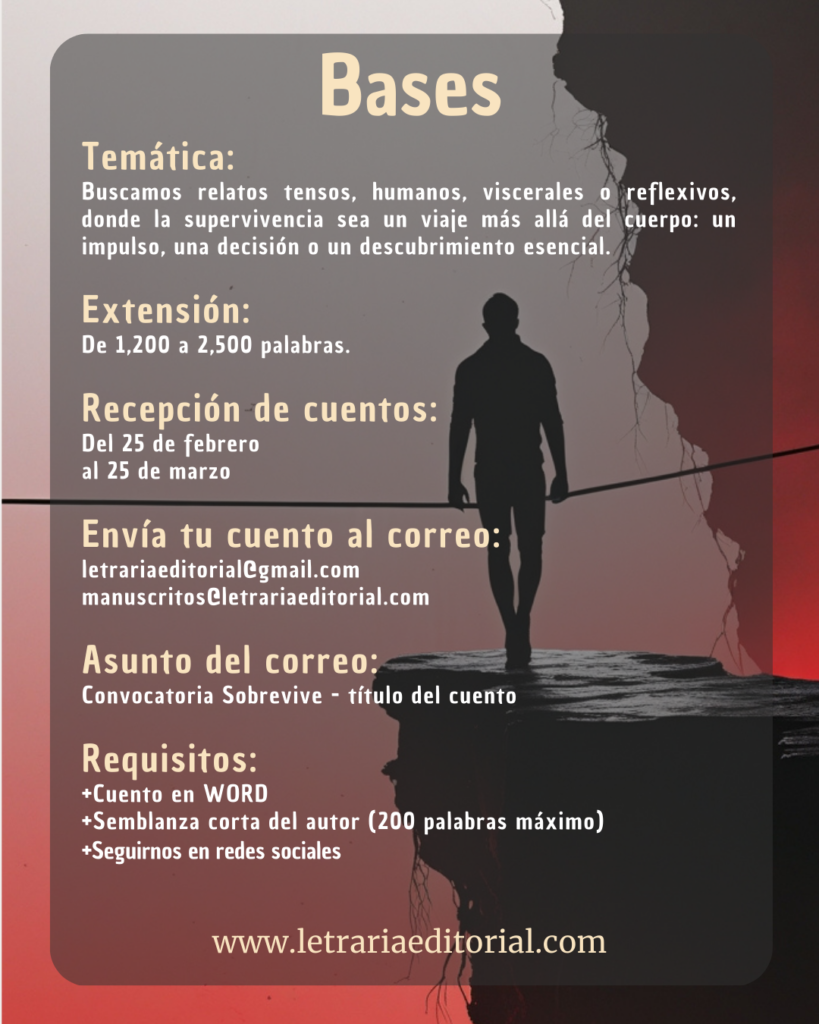 La supervivencia ocurre en lugares extremos, pero también en la vida diaria. “¡Sobrevive!” busca cuentos donde los personajes se enfrenten a límites físicos, emocionales o espirituales y encuentren, de alguna manera, una forma de seguir adelante.